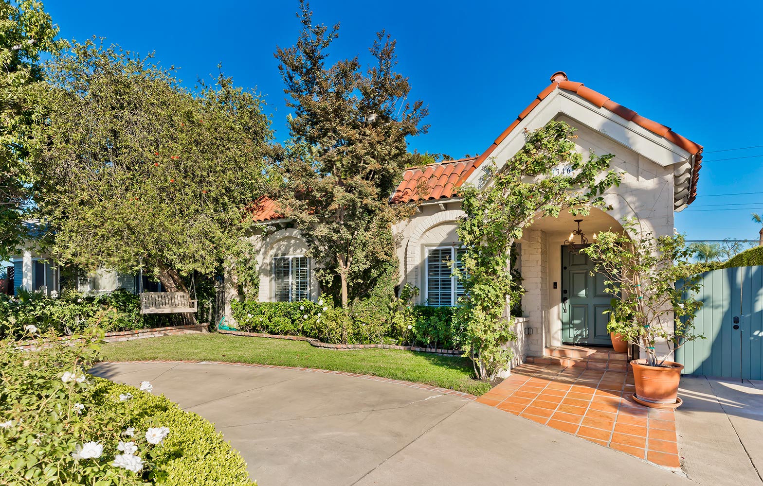 Sparkling Spanish mere seconds from Larchmont Village. This fantastic single-story home is a perfect combination of well-proportioned rooms with lovely details and tasteful upgrades. The entrance foyer leads to a beautiful living room with natural light and carved marble faced fireplace. A formal dining room accesses the spacious kitchen with marble countertops, stainless steel appliances, an island and dual temperature wine refrigerator. Adjoining family area opens to a sunny back patio. The house includes 3 bedrooms and 2.5 baths. Master has gleaming en suite bathroom with whirlpool tub & French doors leading to backyard. Hardwood floors throughout. Central air & heat. The property has an exterior guest suite as well as a detached office.